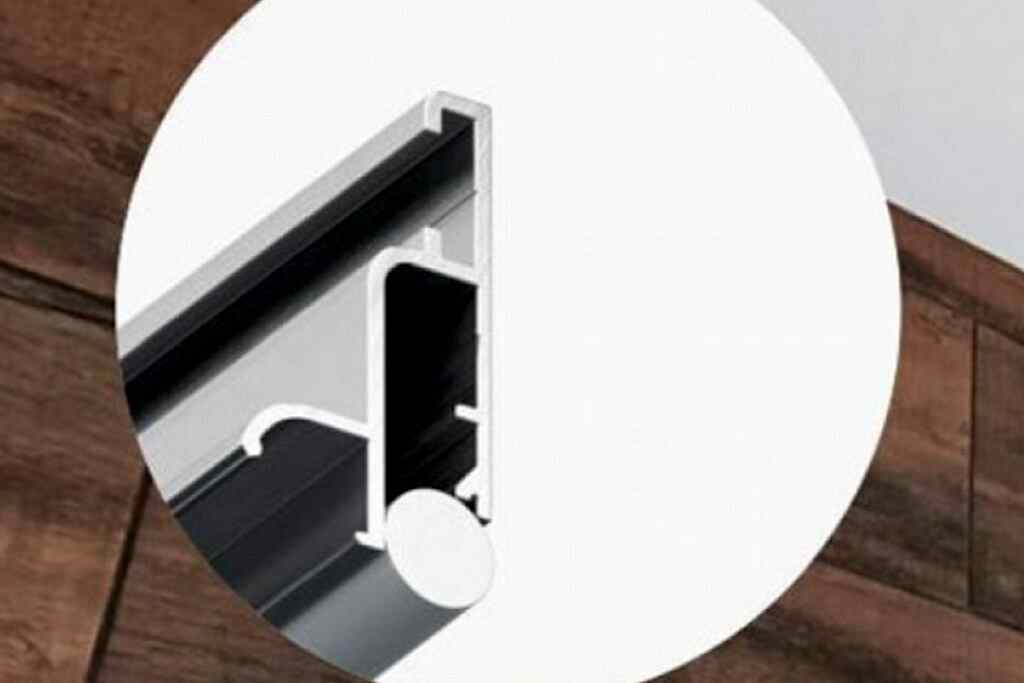 На первый взгляд такой профиль неотличим от обычного профиля для натяжного потолка. Главная особенность - в геометрии гарпуна. Нет зазоров, так как натяжной потолок прижимается к стене вворачиванием гарпуна в профиль. Система ШТОК обладает удобством монтажа натяжного Pin Up на объекте и относительной экономичностью.