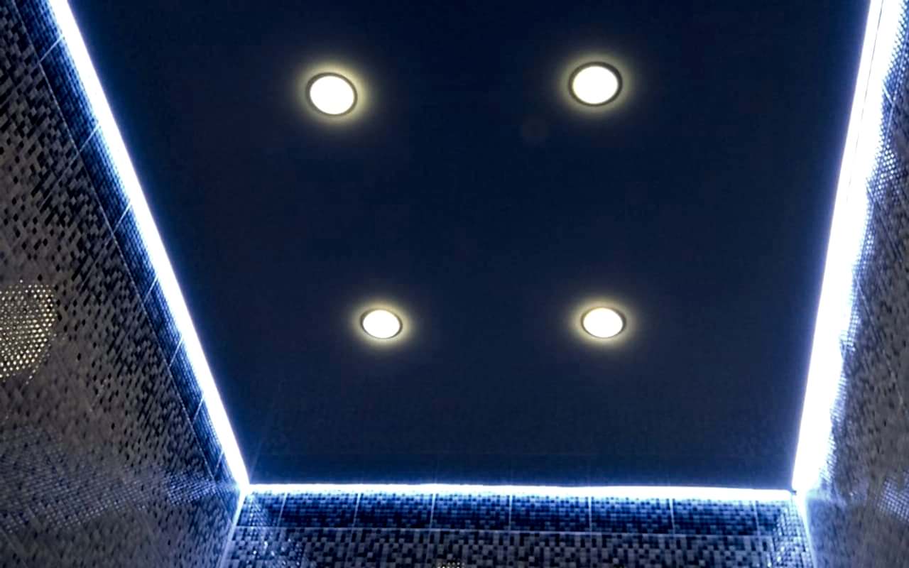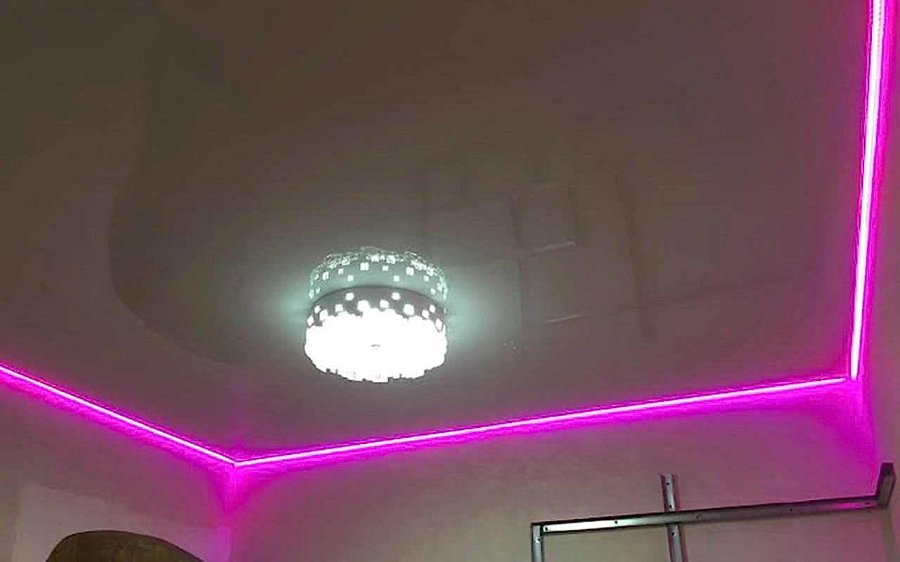 Парящие потолки делаются как из ткани, так и из ПВХ-пленки. Главное, чтобы примыкающая к каркасу часть была непрозрачной. Это необходимо для скрытия креплений. В остальном конструкцию можно креативно обыграть, даже можно создать двухъярусный потолок с подсветкой. Pin Up кстати, должна быть светодиодной (чтобы конструкция не грелась, а маленькие лампочки поместились в зазор). Главное - нужно выделить место под блок управления светом так, чтобы к нему всегда был доступ, но при этом видно устройство не было.