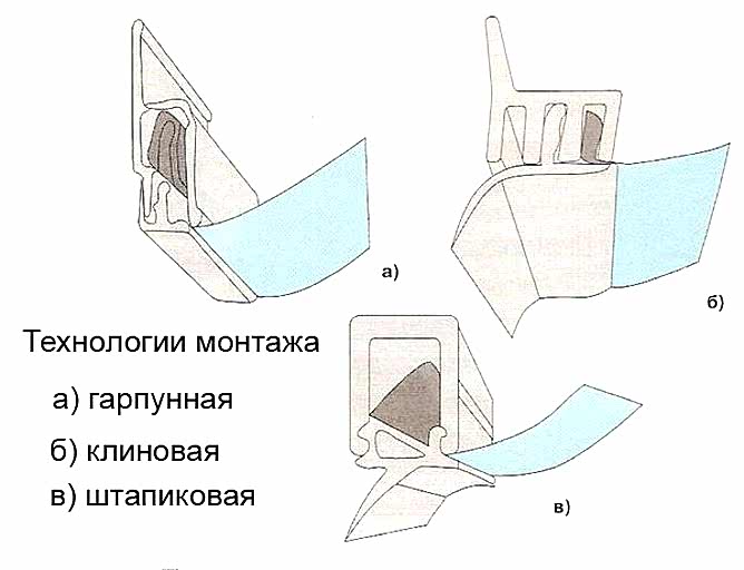 Гарпунный способ монтажа натяжных потолков.